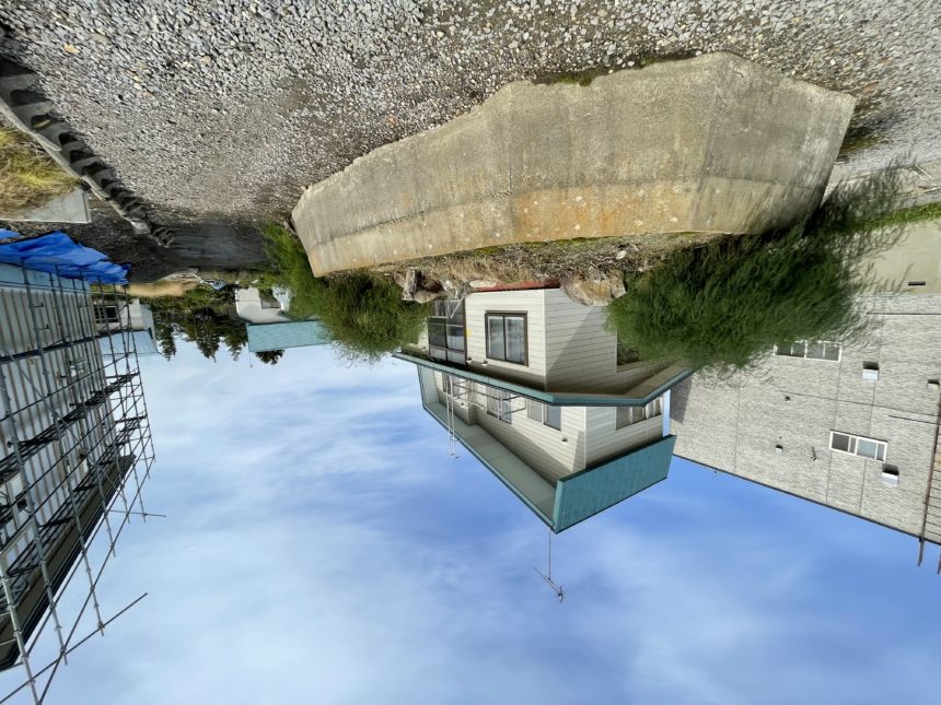 ※木・コンクリートブロック造亜鉛メッキ鋼板葺地下1階付2階建て