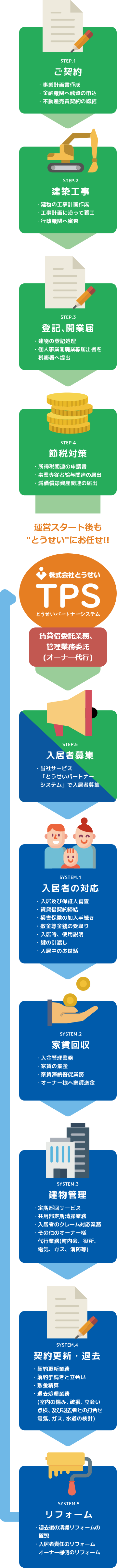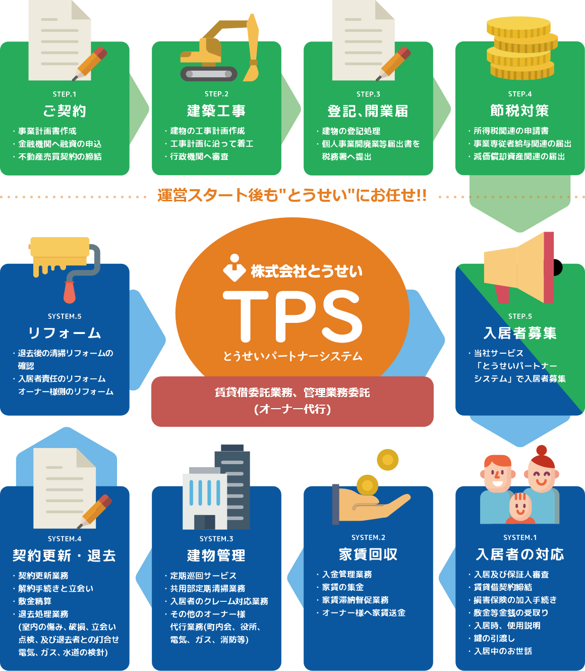 建物の診断を兼ねてメンテナンスを末永く管理します。清掃業務によって快適なマンションライフをお約束します。退去後のリフォーム、増改築にもスムーズに対応します。
